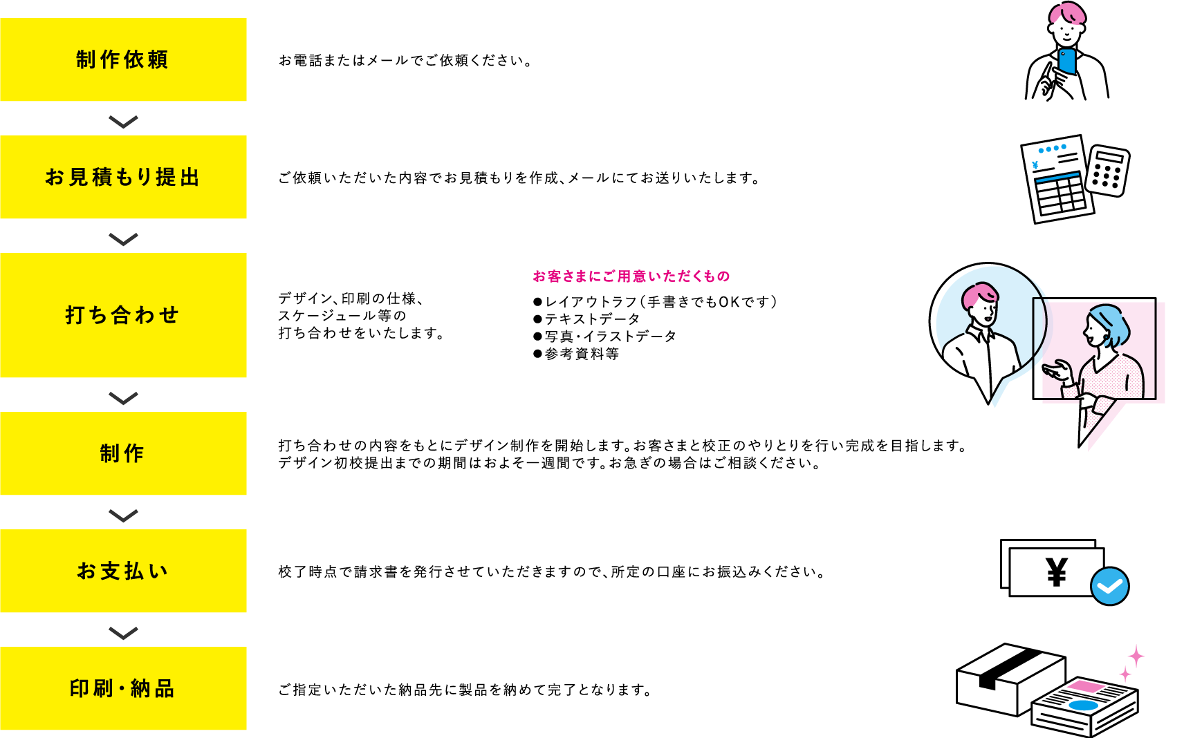 ご依頼から納品までの流れをご確認ください。