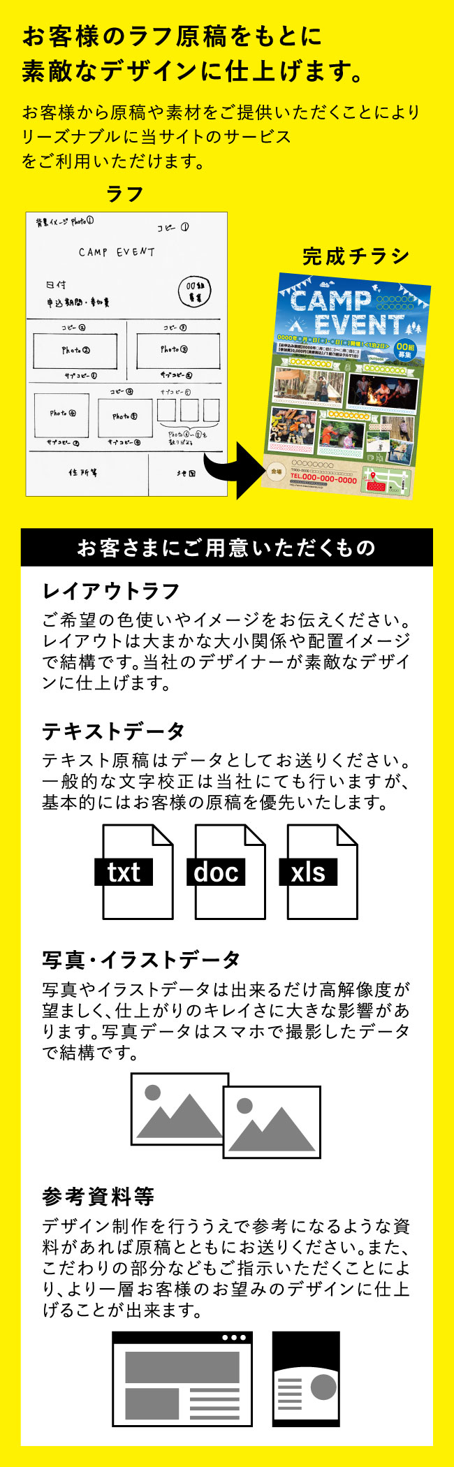 お客様から原稿や素材をご提供いただくことにより
